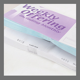 TH Jordan has been supplying churches for over 60 years. Our familiarity with church needs is extensive and we believe we offer the best combination of quality and service at affordable prices anywhere in the UK. Discounts available for early ordering (January – April) All envelopes are designed and manufactured to prevent tearing of bank notes or cheques. Envelopes can be personalised with church logo and scripture verse of your choosing. Weekly Offering Booklets size 75mm x 94mm or (3" x 3 3/4") Boxed Sets size 75mm x 114mm (3’’ x 4.5’’) Cash Binders  |